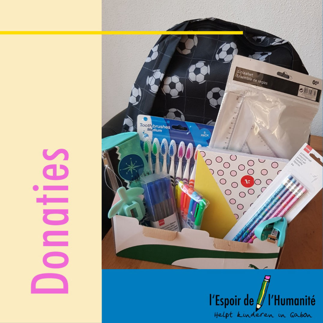 Regelmatig sturen we schoolspullen naar Gabon. Via lokale contactpersonen worden de schoolspullen dan verdeeld onder de kinderen die ze nodig hebben.
